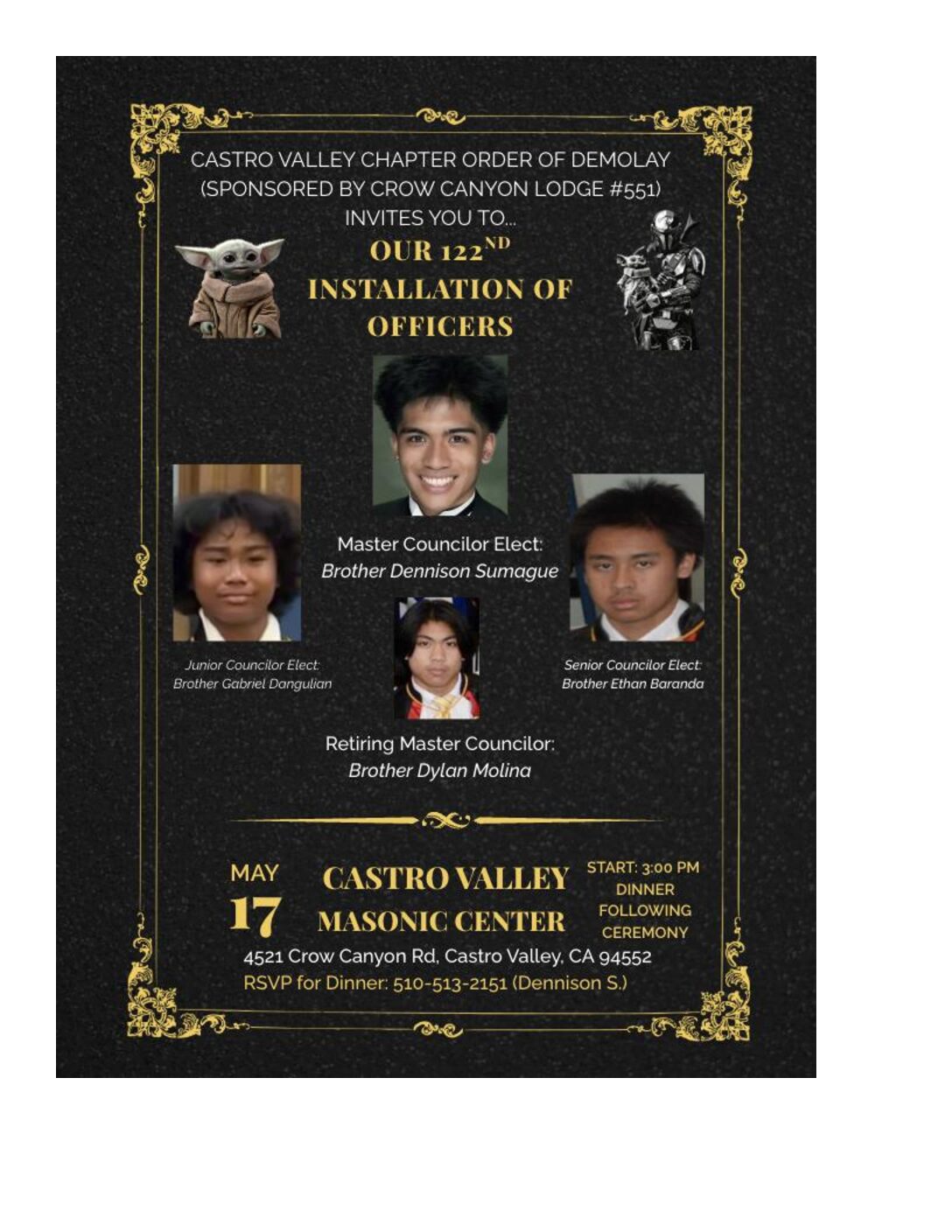 Dinner following the Ceremony. Please RSVP to Dennison at 510 513-2151