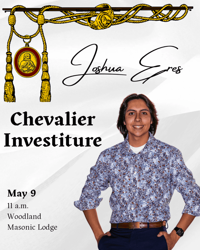 Please join the members of Liberty Chapter DeMolay, along with his family, in honoring Josh Eres as he receives the Degree of Chevalier. Semi-formal/business attire requested.