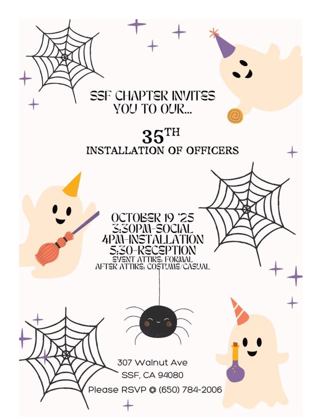 Please join South San Francisco Chapter at their Installation. Social will begin at 3:30 with Installation at 4pm followed by a reception.